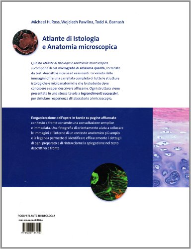 Questo Atlante di istologia e anatomia microscopica si compone di 612 microfotografie corredate da testi descrittivi. La varietà delle immagini offre una carrellata completa di tutte le strutture istologiche e microanatomiche che lo studente deve conoscere e saper descrivere all’esame. Ogni struttura viene presentata in una stessa tavola a ingrandimenti successivi, per simulare l’esperienza di laboratorio al microscopio. L’organizzazione dell’opera in tavole su pagine affiancate con testo a fronte consente una consultazione semplice e immediata. Una fotografia di orientamento aiuta a collocare le immagini all’interno di un contesto anatomico più ampio e la legenda permette di identificare efficacemente i dettagli di ogni preparato e di rintracciarne le spiegazione nel testo descrittivo a fronte.