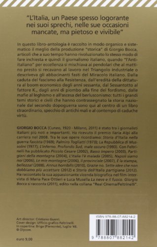Di Giorgio Bocca sono note la vena polemica e la mordace ironia che puntellano con forza i suoi settimanali commenti sulla situazione politica. Per l’Antiitaliano per eccellenza del giornalismo nostrano è persino facile mettere alla berlina i tanti protagonisti delle vicende nazionali, quando si ha alle spalle una conoscenza storica degli eventi di prima mano, come per certi versi testimoniano i tanti libri scritti sulla Resistenza o sui protagonisti del primo dopoguerra, come la sua biografia su Togliatti. In questo libro-antologia è raccolto in modo organico e sistematico il meglio della sua produzione “storica”, articoli che a suo tempo hanno rivoluzionato lo stesso modo di fare inchiesta e quindi il giornalismo italiano, quando Bocca si mischiava ai pendolari che al mattino presto si recavano al lavoro nel Triangolo industriale o descriveva gli abbacinanti fasti del Miracolo italiano. Dalla caduta del fascismo alla Resistenza, dall’eredità della dittatura al boom economico degli anni Sessanta, dal Sessantotto al fattore K., dagli anni di piombo alla fine del fordismo, dalle mafie al leghismo e all’ascesa del berlusconismo: tutti i grandi temi storici e civili che hanno contrassegnato la storia nazionale dal secondo dopoguerra sono qui al centro di un libro straordinario, specchio di antichi mali e al contempo di caduche virtù.