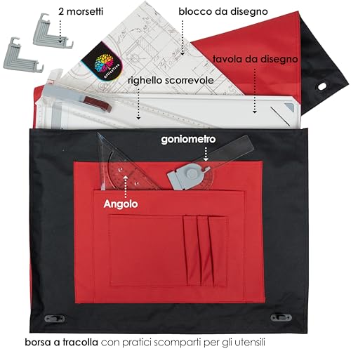 OfficeTree Tavola disegno tecnico – Geo Board 37 x 50 cm – 7 pezzi per un lavoro preciso – Squadre da disegno tecnico professionali – Borsa da trasporto e numerosi accessori – Lavagna da disegno