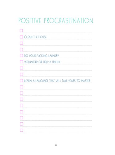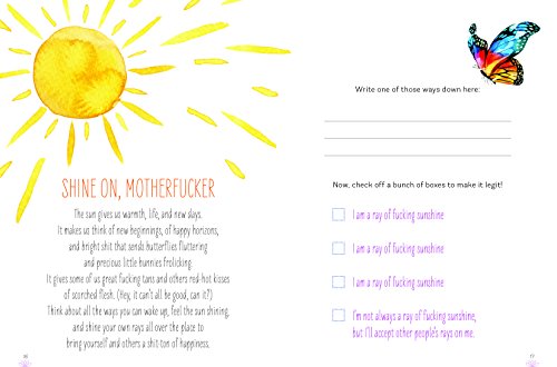 Zen as F*ck is to journaling what Chill the F*ck Out is to colouring books. A down-to-earth approach to the uplifting BS found on every mindfulness guru’s Instagram page, this filthy-as-f*ck journal enjoys the empowering profanity of You Are a Badass and the beautiful journal package of Start Where You Are. Filled with illicit inspirations and profane odes to imperfections, this guided journal lets people get their mindfulness on without being nauseatingly saccharine. Time to enjoy the all-in-one journal for those of us who want to be and do better, but with our God-given right to the f-bomb. Sample Quotes/Inspirations: *Running sh*t is my superpower. *Breathe in strength, breathe out bullshit. *Set goals and f*cking crush them. *Rise, shine, and kick ass. *Zen as fuck. *When you walk up to opportunity’s door, don’t knock–kick that b*tch in, smile, and introduce yourself. Sample Journal Prompts: *You’re on top of the world: Make a list of 5 things that make you f*cking fantastic. *We all have bad days: Make a list of things that bothered you today. Then, cross that list out and tell it to f*ck off. Make another list of what made today great. *Grateful AF: Think of one person who has made your world just a little bit better. Write down the feeling they give you in a word or two. Grab your decorative pens and make this page as f*cking awesome as they are.