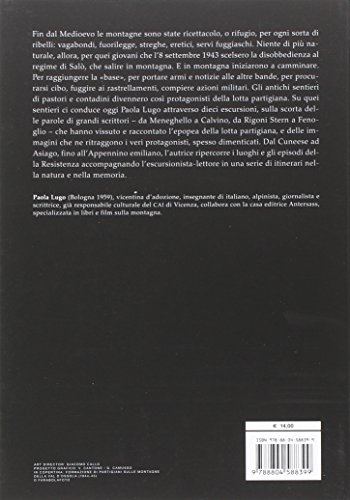 Fin dal Medioevo le montagne sono state ricettacolo, o rifugio, per ogni sorta di ribelli: vagabondi, fuorilegge, streghe, eretici, servi fuggiaschi. Niente di più naturale, allora, per quei giovani che l’8 settembre 1943 scelsero la disobbedienza al regime di Salò, che salire in montagna. E in montagna iniziarono a camminare. Per raggiungere la “base”, per portare armi e notizie alle altre bande, per procurarsi cibo, fuggire ai rastrellamenti, compiere azioni militari. Gli antichi sentieri di pastori e contadini divennero così protagonisti della lotta partigiana. Su quei sentieri ci conduce oggi Paola Lugo attraverso dieci escursioni, sulla scorta delle parole di grandi scrittori – da Meneghello a Calvino, da Rigoni Stern a Fenoglio – che hanno vissuto e raccontato l’epopea della lotta partigiana, e delle immagini che ne ritraggono i veri protagonisti, spesso dimenticati. Dal Cuneese ad Asiago, fino all’Appennino emiliano, l’autrice ripercorre i luoghi e gli episodi della Resistenza accompagnando l’escursionista-lettore in una serie di itinerari nella natura e nella memoria. Introduzione di Santo Peli.