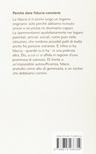 La fiducia è in primo luogo un legame originario: solo perché abbiamo ricevuto amore e sicurezza ne diveniamo capaci. La sperimentiamo quotidianamente nei legami parentali, amicali, sociali, come pure nelle istituzioni, che rendono possibili patti di lealtà anche fra persone estranee. E infine si ha fiducia quando la si ha – in una potenza altra, Dio, a cui ci si affida in ragione d’una promessa di salvezza. Di fronte a un’impossibile autosufficienza, fidarsi, anzitutto come atto di generosità, è un rischio che dobbiamo correre.