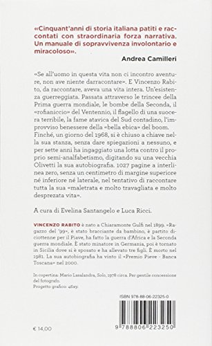Quel ragazzo spavaldo che ci guarda in copertina ha scritto uno dei libri piú memorabili del Novecento italiano. Con una lingua inventata, ricchissima e pirotecnica, in Terra matta ha raccontato la sua storia, quella di un secolo e dell’Italia intera. Era un capolavoro, l’hanno letto in tantissimi, lo ricordano tutti. Ciò che nessuno poteva immaginare è che Vincenzo Rabito, nella sua stanzetta, avesse continuato a litigare con la tastiera fino all’ultimo giorno. Scampate alla distruzione per un soffio, dimenticate in un cassetto per quarant’anni e poi raccolte dal figlio Giovanni, le pagine del secondo memoriale escono ora in un adattamento libero e personale, piú intimo e familiare. Cosí, il grande scrittore «inafabeto» ci racconta di nuovo il romanzo della sua vita. Tornando sugli episodi, cucendo, indugiando, aprendo i ricordi in scene indimenticabili, da quell’immenso cantastorie che era.