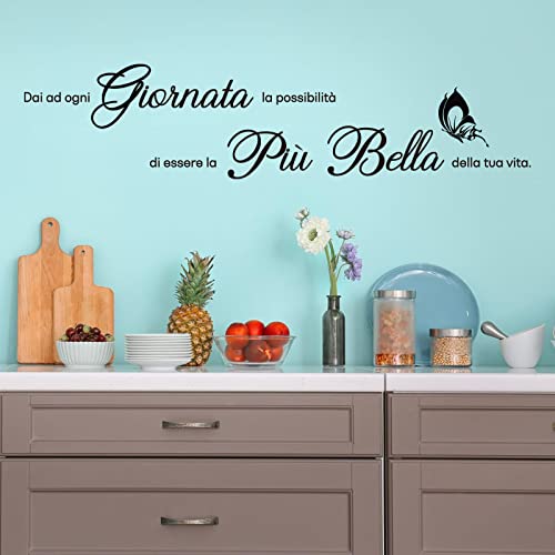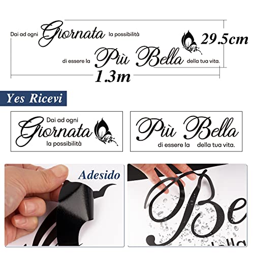 Set Adesivi Murali Scritte Italiano Frasi Adesivi da Parete Citazioni PVC Nero Ornamento per Casa Cucina Camera da Letto Soggiorno Porta Finestre Muro Specchio Fai da Te