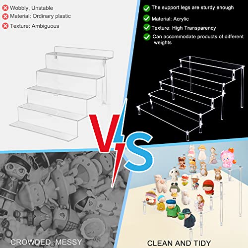 2 Espositore Acrilico Riser Trasparente, Espositori da 5 Livelli in Acrilico Scala, supporti per organizer Display Stand Per Spettacolo Cupcake Rossetto Smalto UnghieArtigianato (Rettangolo)
