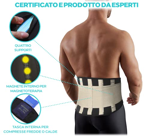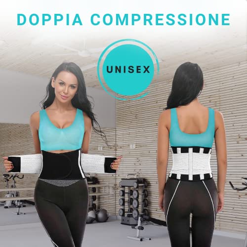 Tech Therapeutics Fascia Lombare Supporto Schiena Ortopedica – Fascia Elastica Lombare Moto – Fascia Schiena Lombare con Stecche Regolabile Donna Uomo – Cintura Lombare di Sostegno – Bianca – XS-M