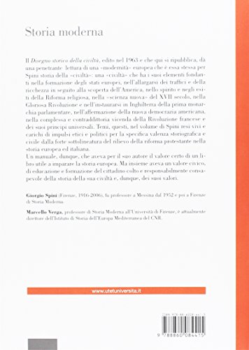 Il Disegno storico della civiltà, edito nel 1963 e che qui si ripubblica, dà una penetrante lettura di una «modernità» europea che è essa stessa per Spini storia della «civiltà»: una «civiltà» che ha i suoi elementi fondanti nella formazione degli stati europei, nell’allargarsi dei traffici e della ricchezza in seguito alla scoperta dell’America, nello spirito e negli esiti della Riforma religiosa, nella «scienza nuova» del XVII secolo, nella Gloriosa Rivoluzione e nell’instaurarsi in Inghilterra della prima monarchia parlamentare, nell’affermazione della nuova democrazia americana, nella complessa e contraddittoria vicenda della Rivoluzione francese e dei suoi principi universali. Temi, questi, nel volume di Spini resi vivi e carichi di impulsi etici e politici per la specifica valenza storiografica e civile dalla forte sottolineatura del rilievo della riforma protestante nella storia europea ed italiana. Un manuale, dunque, che aveva per il suo autore il valore certo di un libro utile a imparare la storia europea. Ma insieme aveva un valore civico, di educazione e formazione del cittadino colto e responsabilmente consapevole della storia della sua civiltà e, dunque, dei suoi valori.
