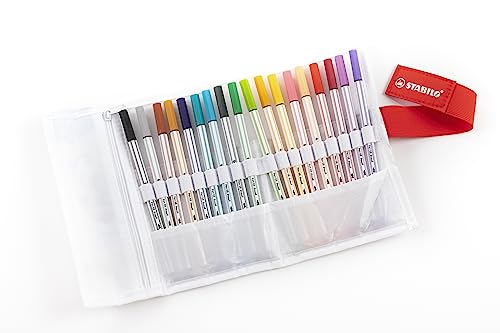 STABILO Pen 68 brush – Pennarello Premium con punta a pennello – Rollerset con 18 colori assortiti