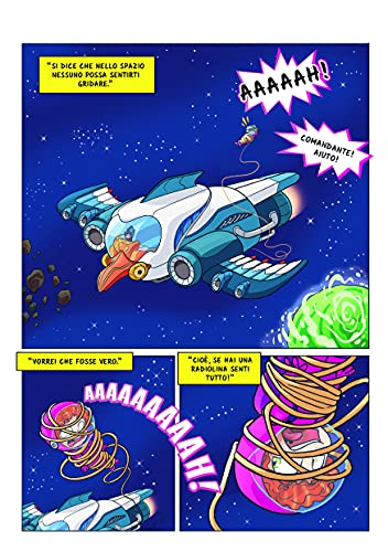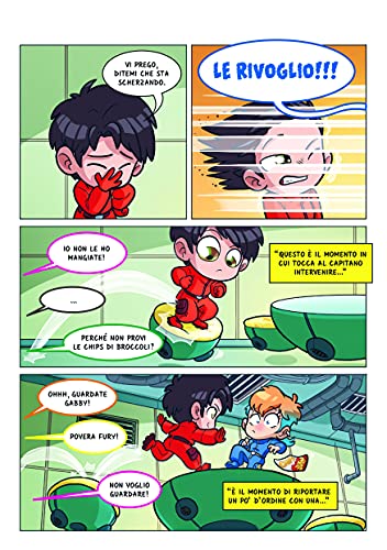 Gabby è al comando di una missione delicatissima: raggiungere un pianeta lontano e salvare il mondo da una minaccia sconosciuta. Non si sa quale pianeta e nemmeno quale minaccia. L’unica cosa certa è che Gabby potrà contare sui migliori astronauti della Terra! Cioè… quella era l’idea iniziale, poi è stato arruolato un equipaggio di persone…in gamba, dai. Così così. Be’, diciamo non disastrose. Comunque non sarà un problema affrontare profondità oceaniche, mostri, robot impazziti, guasti come se piovesse, un misterioso traditore e… Oh, cavoli! Età di lettura: da 10 anni.