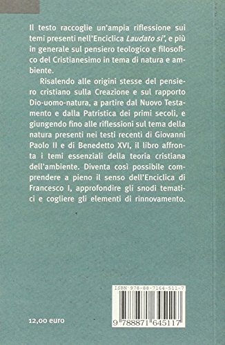 Il testo raccoglie un’ampia riflessione sui temi presenti nell’Enciclica Laudato si’, e più in generale sul pensiero teologico e filosofico del Cristianesimo in tema di natura e ambiente. Risalendo alle origini stesse del pensiero cristiano sulla Creazione e sul rapporto Dio-uomo-natura, a partire dal Nuovo Testamento e dalla Patristica dei primi secoli, e giungendo fino alle riflessioni sul tema della natura presenti nei testi recenti di Giovanni Paolo II e di Benedetto XVI, il libro affronta i temi essenziali della teoria cristiana dell’ambiente. Diventa così possibile comprendere a pieno il senso dell’Enciclica di Francesco I, approfondire gli snodi tematici e cogliere gli elementi di rinnovamento.
