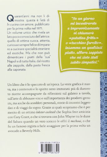 Sophia Loren in una veste insolita: quella della donna di casa, che propone un libro composto da più di 200 ricette. Uscito con successo negli anni Settanta, viene riproposto in una versione arricchita da contenuti speciali: oltre alle ricette, intervallate da testi su vari argomenti (il bon ton a tavola e l’arte di apparecchiare, ma anche i ricordi di un infanzia di guerra fino all’invito, rivolto agli uomini, a prendere almeno ogni tanto le redini della cucina) la nuova edizione propone fotografie inedite che ripercorrono i momenti clou della carriera di Sophia Loren, tratte dai suoi film o da momenti pubblici della sua vita fino a oggi.