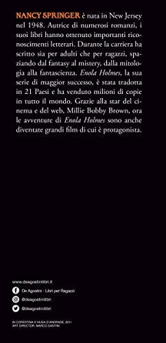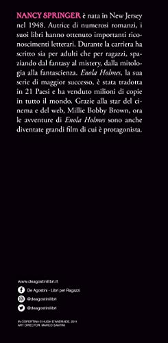 Enola Holmes non augurerebbe a nessuno di essere la sorella minore dei due zucconi inglesi più famosi al mondo. Mycroft e Sherlock Holmes. Che la guardano sempre dall’alto e la credono una femminuccia capricciosa. Per fortuna la loro madre la pensa diversamente… Quando però la donna scompare nel nulla, le cose per Enola precipitano e i fratelli decidono di spedirla in collegio, convinti che quel posto farà di lei una docile signorina. Ma Enola, che non ha mai obbedito a Mycroft e Sherlock un solo giorno in vita sua, non inizierà certo adesso. E se quei due sono troppo ottusi per aiutarla nella ricerca della madre, ci penserà lei a indagare. Così, in sella alla sua bicicletta, Enola fugge di casa e si mette in viaggio verso Londra. E se sulla strada dovesse imbattersi nello strano rapimento di un giovane marchese, be’… sarebbe l’occasione perfetta per dimostrare quanto risolvere casi sia elementare, per una Holmes! Tra intrighi, indagini e inseguimenti mozzafiato, con questo romanzo iniziano le avventure di un’eroina intelligente e caparbia, capace di farla sotto il naso dello stesso Sherlock Holmes. Età di lettura: da 12 anni.