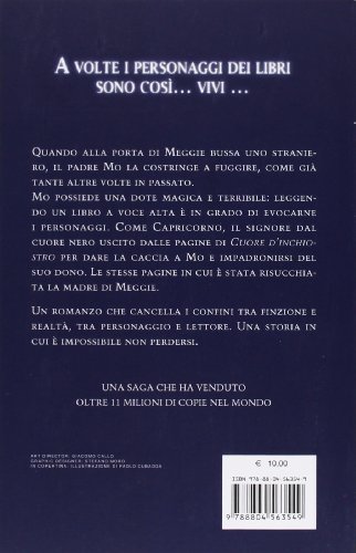 Meggie ama i libri. E li ama moltissimo anche il padre Mo, che però rifiuta di leggerli a voce alta. Se lo facesse, infatti, porterebbe la vita nei libri e i personaggi dei libri alla vita. In una notte crudele lesse “Cuore d’inchiostro” e un malvagio signore dal cuore nero, Capricorno, si liberò dai lacci delle parole per materializzarsi nel suo salotto. In quell’attimo fatale accadde anche qualcosa di più grave: la moglie di Mo scomparve per sempre tra le pagine del libro. E ora il perfido Capricorno cerca Mo per piegare i suoi poteri a perfidi scopi…