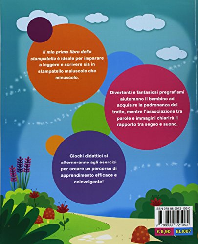 “Il mio primo libro dello stampatello” è ideale per imparare a leggere e scrivere sia in stampatello maiuscolo che minuscolo. Divertenti e fantasiosi pregrafismi aiuteranno il bambino ad acquisire la padronanza del tratto, mentre l’associazione tra parole e immagini chiarirà il rapporto tra segno e suono. Giochi didattici si alterneranno agli esercizi per creare un percorso di apprendimento efficace e coinvolgente! Età di lettura: da 5 anni.
