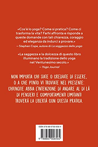 Non importa chi siate o crediate di essere, o a che punto vi troviate nel presente: chiunque abbia l’intenzione di andare al di là di pensieri e comportamenti limitanti troverà la libertà con questa pratica. L’autrice, tra le più note insegnanti di yoga a livello internazionale, combina la sua conoscenza della filosofia yoga con l’esperienza personale accumulata in un ventennio di seminari. Uno stile efficace e privo di retorica con una vena costante di autoironia e leggerezza nel trattare argomenti profondissimi senza per questo sminuirli e banalizzarli. Uno strumento di riflessione sullo yoga nella sua funzione più ampia di veicolo per un’autotrasformazione verso la completezza, la felicità, l’unificazione.