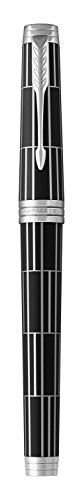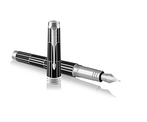 PARKER Premier penna stilografica, nera con eleganti finiture cromate, pennino medio e refill di inchiostro nero (1931402)