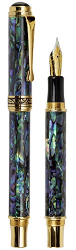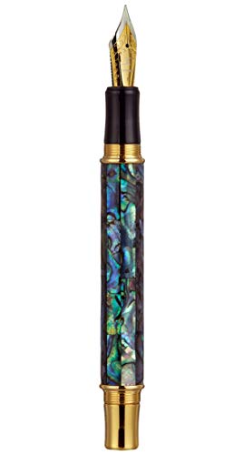 Xezo Penna stilografica Maestro, pennino fine. Conchiglia in abalone naturale con placcatura in oro 18K. Artigianale, serializzato, non ce ne sono due uguali