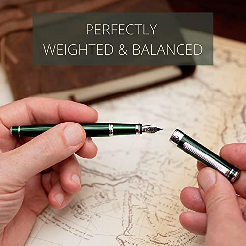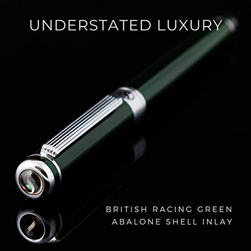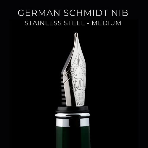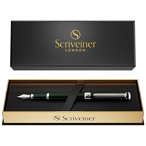 Scriveiner Penna stilografica Verde Inglese molto scuro, splendida penna di lusso, finitura cromata, pennino Schmidt medio, miglior set regalo per uomini, donne, professionisti, dirigenti