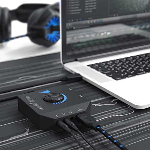 CSL – Scheda audio USB esterna e HUB USB e Amplificatore Cuffie 3 in 1 – Uscita per cuffia con microfono gaming a 4 poli – Audio OUT – Mic in – Controllo volume e Equalizzatore – LED blu – nero