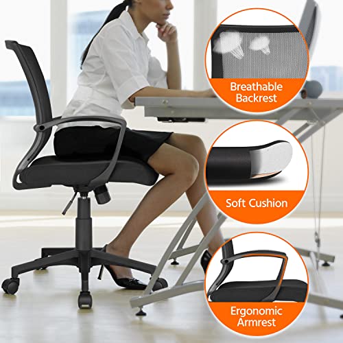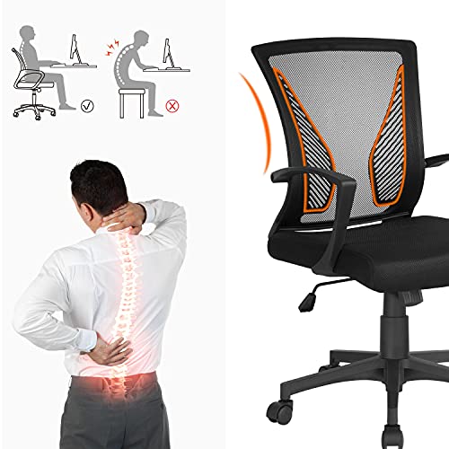 Soberine Sedia Ufficio, Sedie Scrivania Ergonomica Con Braccioli e Rotelle Girevoli, Poltrona Ufficio in Rete Traspirante con Supporto Lombare e Altezza Regolabile Nero