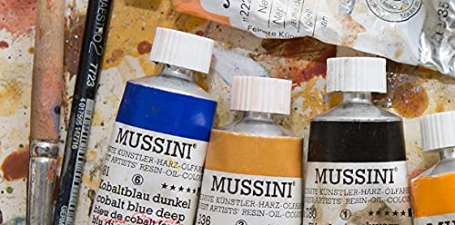 ???? QUALITÀ: L’unico colore a base di olio e resina naturale esistente al mondo MUSSINI soddisfa i più alti standard di qualità. Le 108 tonalità della gamma sono della massima brillantezza, purezza e intensità. La gamma contiene un gran numero di colori a pigmento singolo, preziosi colori trasparenti e colori speciali unici. L’essiccazione ben bilanciata è il risultato della combinazione dei migliori oli e resine per pittura, e il delicato odore resinoso è molto piacevole.