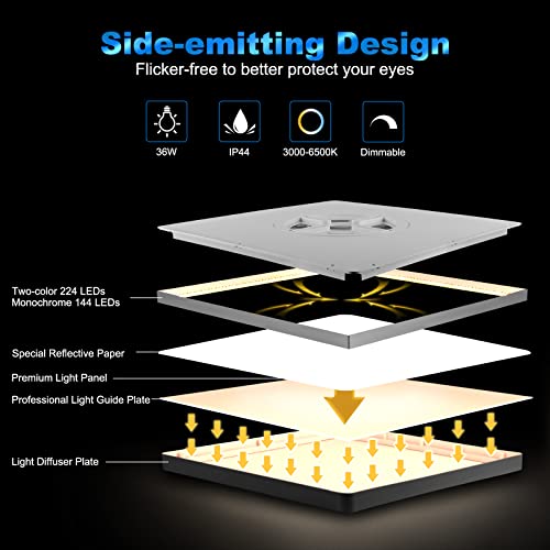 EASY EAGLE Plafoniera LED Dimmerabile Con Telecomando, 36W Lampada da Soffitto Moderna 3000-6500K IP44 3240LM Quadrata Pannello Luce per Camera Cucina Soggiorno Ø30 Bianco
