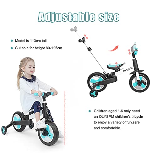 Design 5 in 1 -Bici senza pedali/Triciclo con maniglione/Triciclo/Triciclo senza pedali (impara a camminare). Puoi cambiare le varie modalità del Triciclo piegando le due ruote posteriori del Triciclo.I bambini di età compresa tra 1 e 6 anni hanno bisogno solo di un OLYSPM Triciclo per godere di tutti i tipi di divertimento, sicuro e confortevole. -