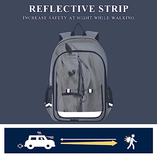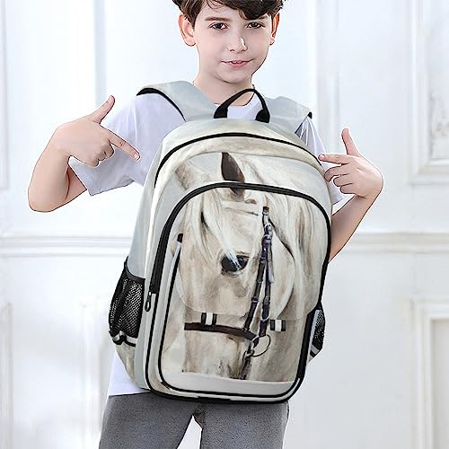 Mnsruu Zaino con cavallo per ragazzi e ragazze, zaino con cavallo bianco, zaino per studenti, zaino per la scuola elementare e adolescenti, Cavallo Pony, Taglia unica